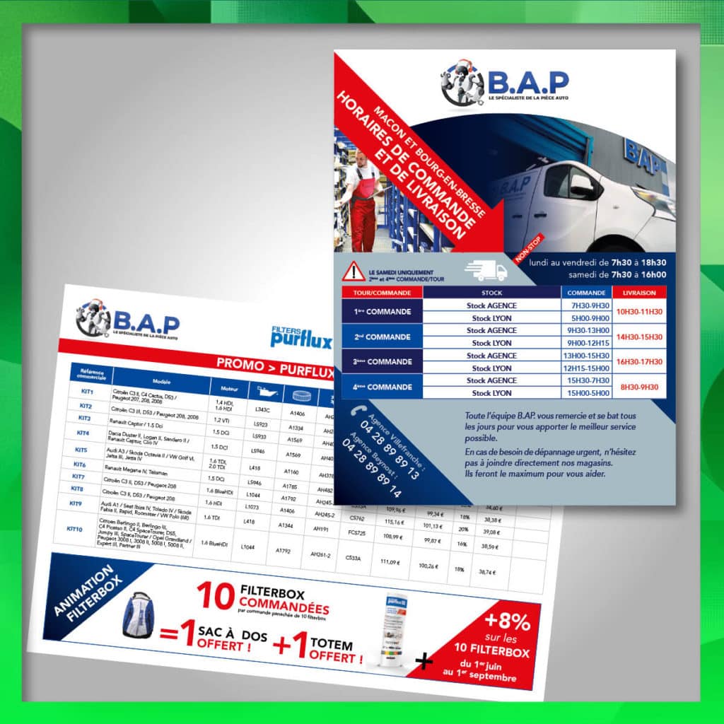 BAP France, acteur de référence de la pièce détachée et de la fourniture automobile, a besoin de catalogues produits saisonniers clairs, fiables et rapides à produire. L’objectif : faciliter la prise de commande des distributeurs et garages, harmoniser la présentation de gammes très vastes et accélérer la mise sur le marché des nouveautés. En tant qu’agence de communication 360°, nous avons construit un dispositif “print-ready” capable d’absorber des volumes de 28 à 92 pages, en interaction quotidienne avec l’équipe marketing. Défi supplémentaire : garantir la cohérence de la charte graphique tout en intégrant des milliers de références, visuels techniques et tableaux de compatibilité, sans sacrifier l’ergonomie de lecture.